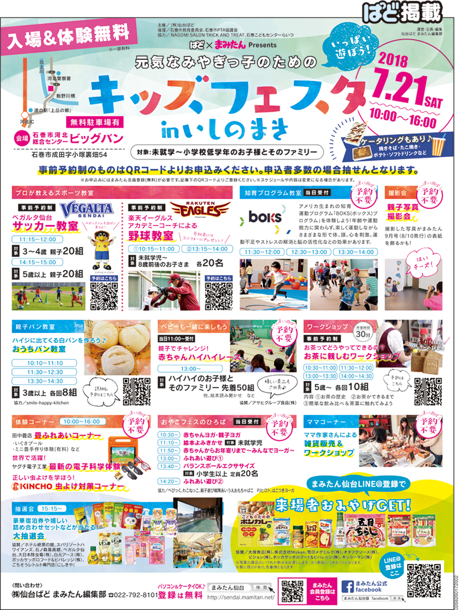 キッズフェスタinいしのまきに出展いたします!